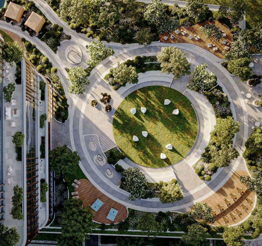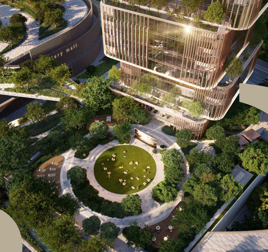 Sobha One features golf course views, landscaped areas, fitness and wellness spaces, retail outlets, and panoramic city views.